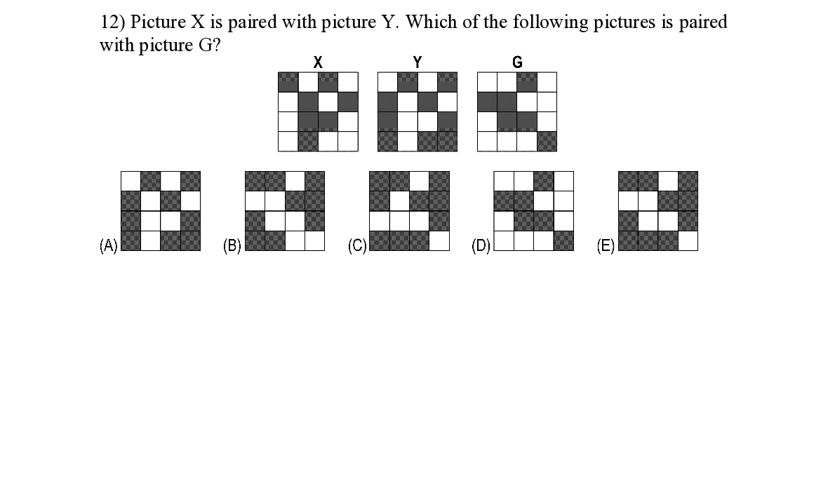 Q12. Picture X is paired with picture Y. Which of the following pictures is paired with picture G?