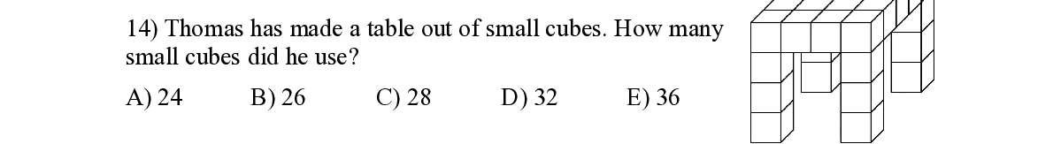 Q14. Thomas has made a table out of small cubes. How many small cubes did he use?
