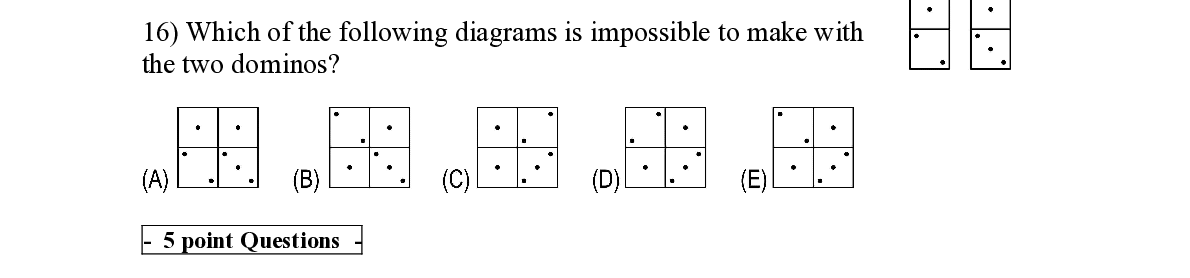 Q16. Which of the following diagrams is impossible to make with the two dominos? - 5 point Questions -