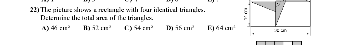 Q22. The picture shows a rectangle w ith four identical triangles. Determine the total area of the triangles.