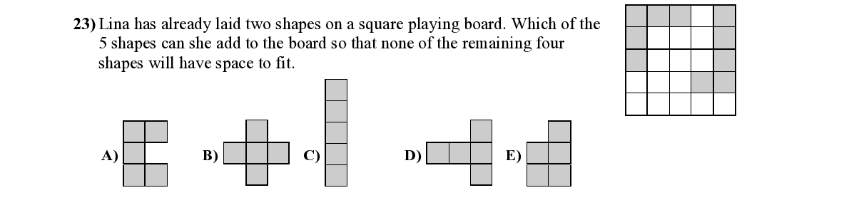 Q23. Lina has already laid two shapes on a square playing board. Which of the