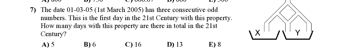 Q7. The date 01-03-05 (1st March 2005 ) has three consecutive odd numbers. This is the first day in th e 21st Century with this property. How many days with this property are there in total in the 21st Century?