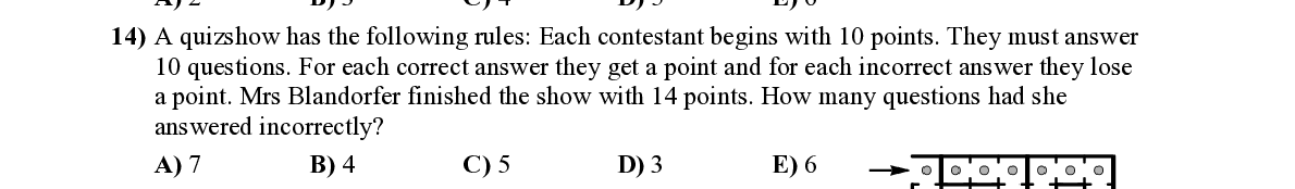 Q14. A quizshow has the following rules: Each contesta nt begins with 10 points. They must answer