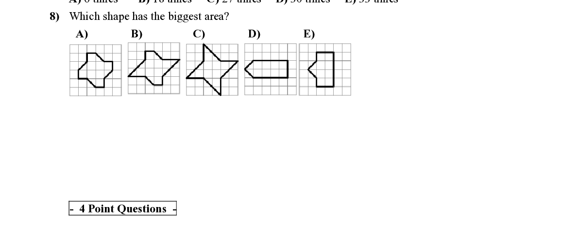 Q8. Which shape has the biggest area?