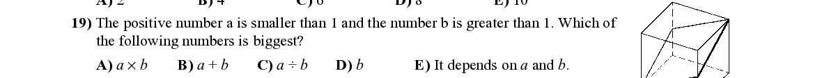 Q19. The positive number a is smaller than 1 and the number b is greater than 1. Which of the following numbers is biggest?