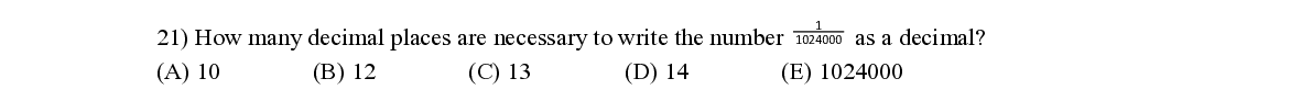 Q21. How many decimal places are necessary to write the number 1024000 as a decimal ?
