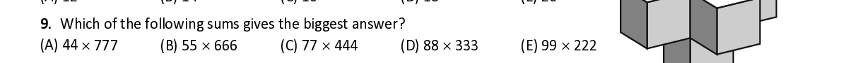 Q9. Which of the following sums gives the biggest answer?