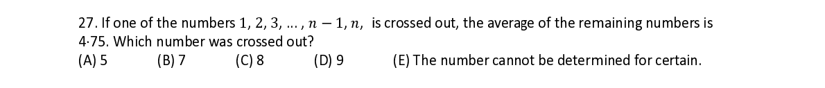 Q27. If one o f f the numb e e rs 1 , 2 , 3 , ... , ݊െ1 , ݊ , i i s crossed o u u t, the avera g g e of the re m m aining nu m m bers is