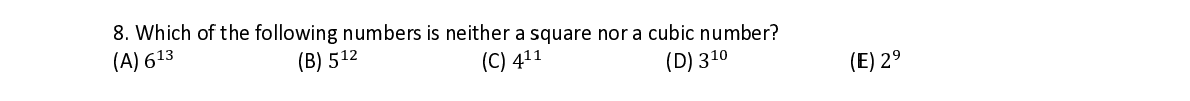 Q8. Which o f f the followi n n g numbers i s neither a s s quare nor a cubic numb e r? ଵଷ ଵଶ ଵ ଵ ଵ ଵ ଽ