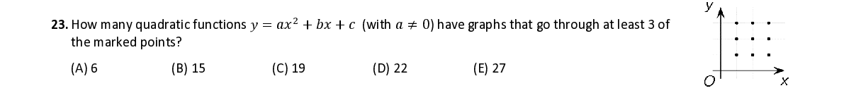 Q23. How many quadratic functions 푦 = 푎푥 2 + 푏푥 + 푐 ( with 푎 ≠ 0 ) have graphs that go through at least 3 of the mark ed points ?