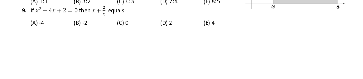 Q9. If 푥 2 − 4 푥 + 2 = 0 then 푥 + equals 푥