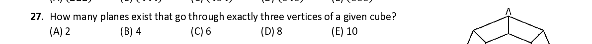 Q27. How many planes exist that go through exactly three vertices of a given cube?