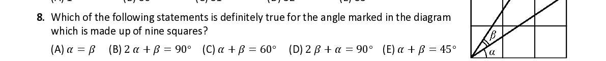 Q8. Which of the following statements is definitely true for the angle marked in the diagram which is made up of nine squares?