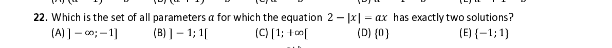 Q22. Which is the set of all parameters 푎 for which the equation 2− | 푥 | = 푎푥 has exactly two solutions?