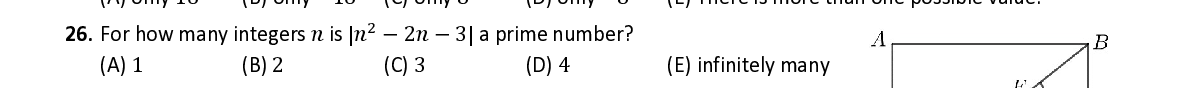 Q26. For how many integers 푛 is | 푛 − 2 푛 − 3| a prime number?