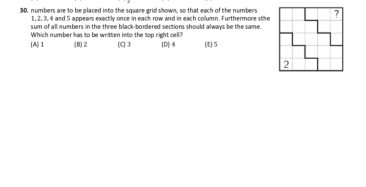 Q30. numbers are to be placed into the square grid shown, so that each of the numbers