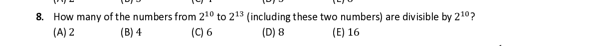 Q8. How many of the numbers from 2 to 2 (including these two numbers) are divisible by 2 ?