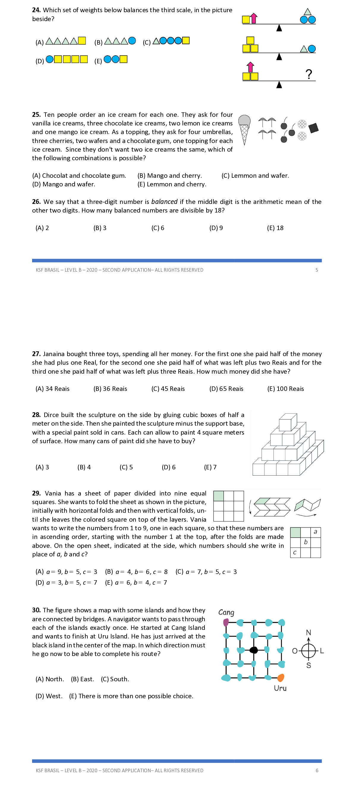 Q24. Which set of weights below balances the third scale, in the picture beside?