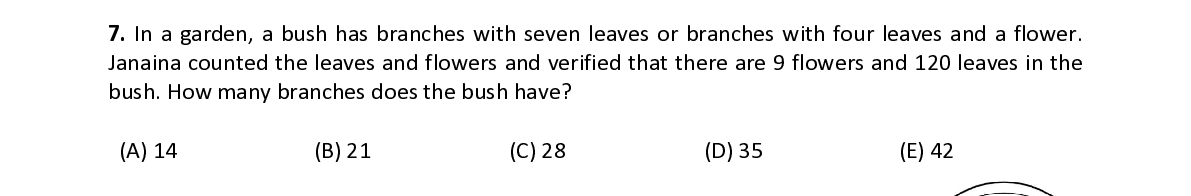 Q19. Beatriz has five sisters with ages of 2, 3, 5, 8, 10 and 17. Beatriz writes these ages in the circles of the opposite diagram, so that the sum of the ages in the four corners of the square is equal to the sum of the ages in the four circles aligned horizontally. What is this sum?