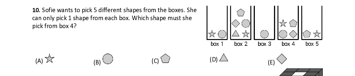 Q10. Sofie wants to pick 5 different shapes from the boxes. She can onl y pick 1 shape from each box. Which shape must she pick from box 4?