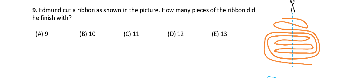 Q11. Julie and Angela played "kangball", a ball game. Each goal in their game scores 2 points. Julie scored 5 goals and Angela scored 9 goals. How many more points than Julie did Angela score?
