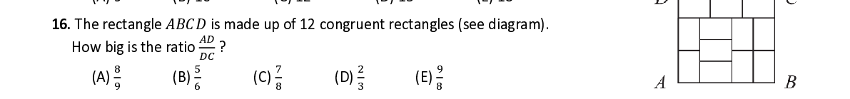 Q16. The rectangle 퐴퐵퐶퐷 is made up of 12 c ongruent rectangles (see diagram ) . 퐴퐷 How big is the ratio ? 퐷퐶