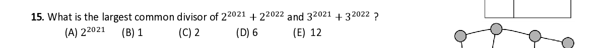 Q15. W hat is the largest common divisor of 2 + 2 a nd 3 + 3 ? 2021