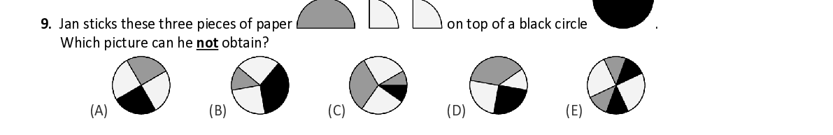 Q9. Jan sticks these three pieces of paper o n top of a black circle . W hich picture can he n o t obtain ?