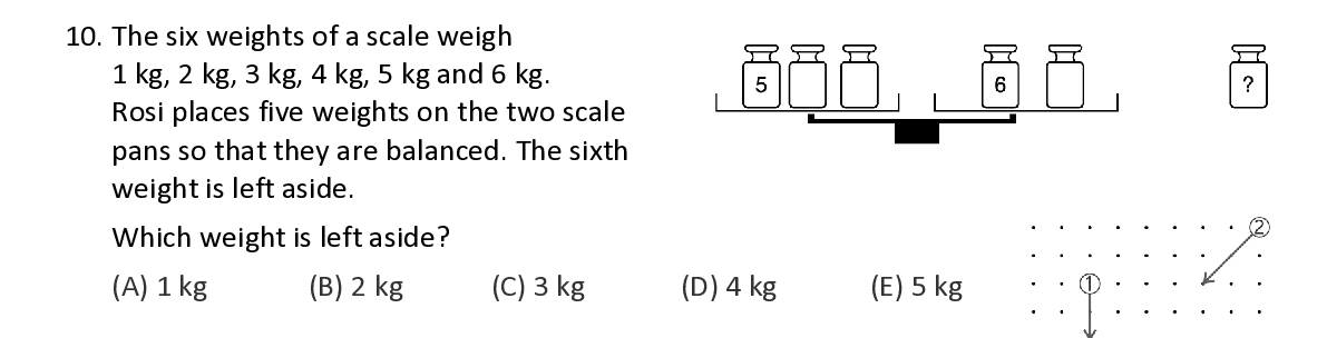 Q10. The six weights of a scale weigh