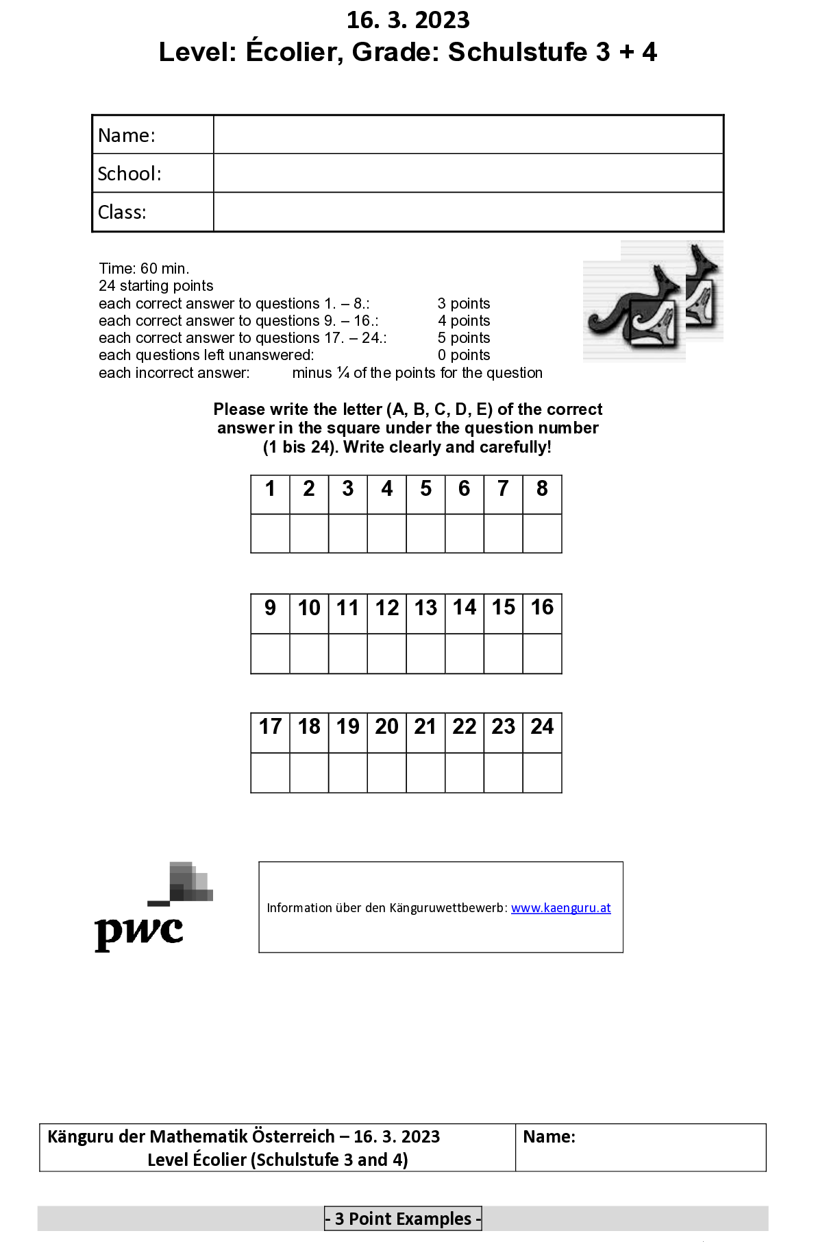 2023 Ecolier (Grade 3 - 4)