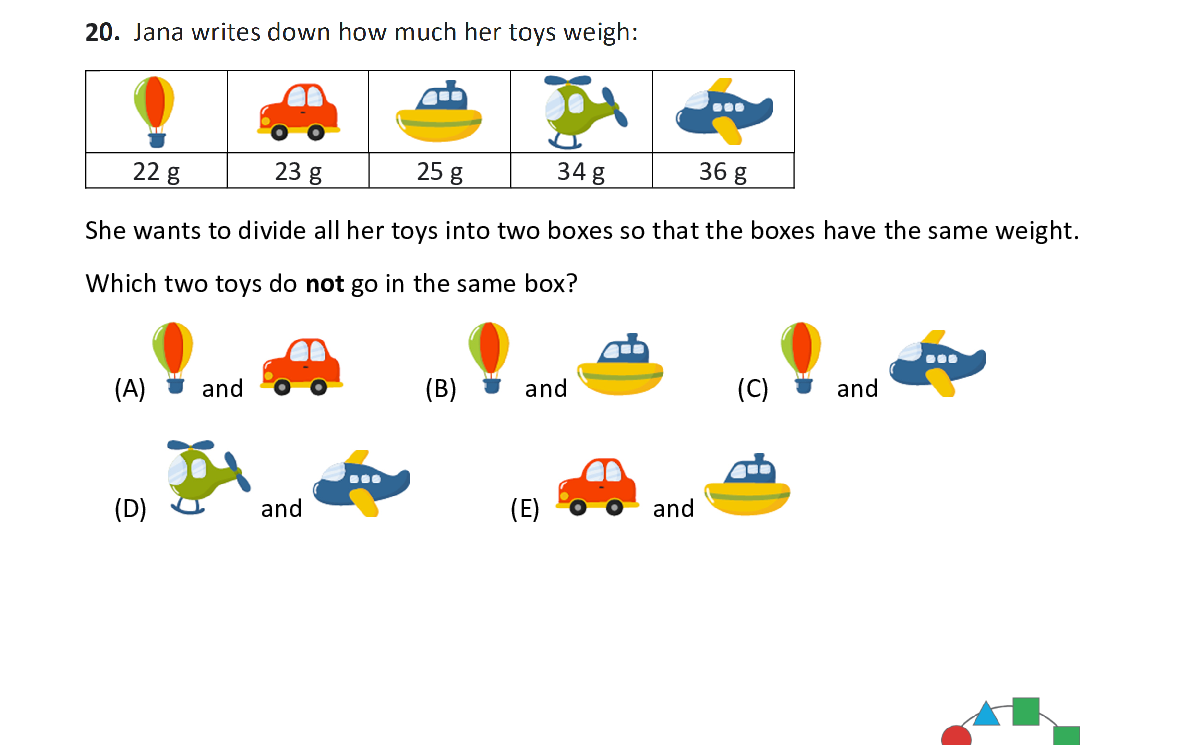 Q20. Jana writes down how much her toys weigh: