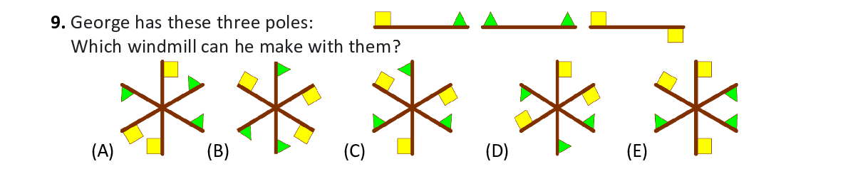 Q9. George has these three poles: Which windmill can he make with them?